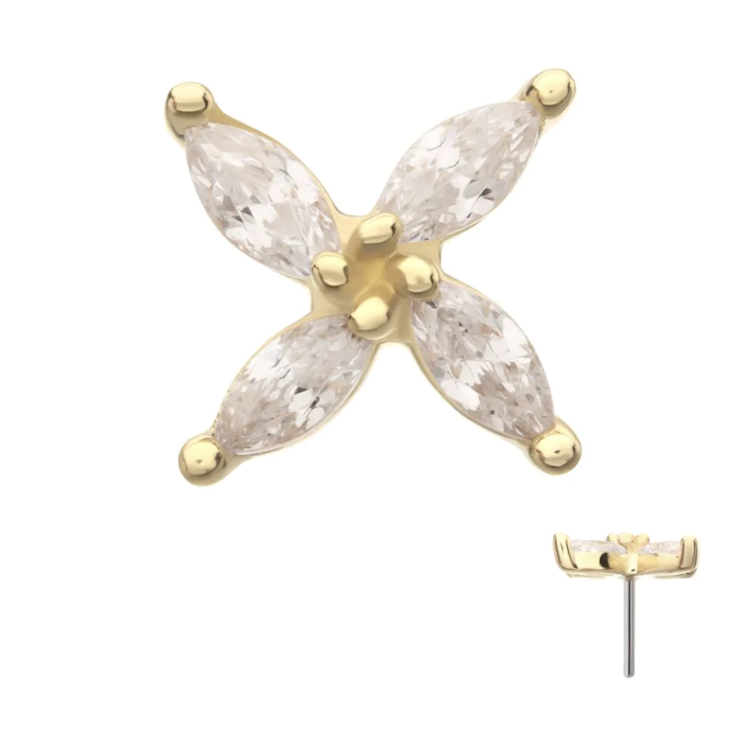 14 Karaats Gouden threadless 4-Marquiseblad bloem