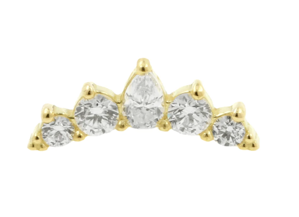 18 Karaats Gouden Zirkonia Kroon – Clear – Threadless Top van 18 Karaats Goud met een cubic zirconia in de kleur Clear. Compatibel met alle Threadless Base staafjes en voorzien van een handig push/pull systeem zonder schroefdraad!