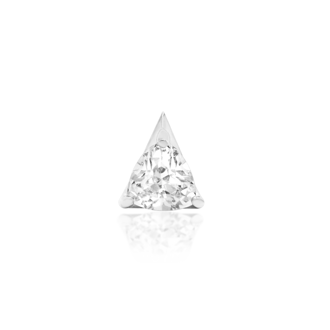 Dit sieraad geeft een geometrische twist aan deze adembenemende 3 mm driehoekige CZ-ring, gecombineerd met een prachtig hoogglans asymmetrisch 14-karaats gouden montuur. Met een afmeting van 3.5×4.5mm voegt deze top een subtiele glans toe aan je piercing. Het ingenieuze kliksysteem maakt het aanbrengen en verwijderen eenvoudig, zonder gedoe met schroefdraad. Perfect voor diegenen die de voorkeur geven aan gebruiksgemak zonder in te boeten op stijl.
