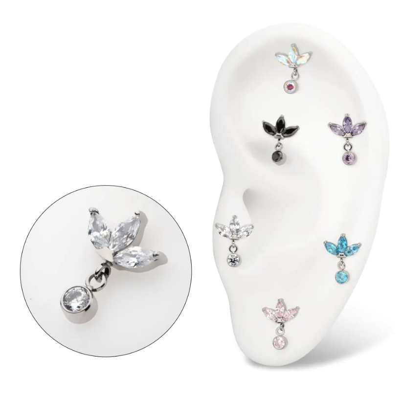 Titanium threadless Marquise Fan met Zirkonia bedel